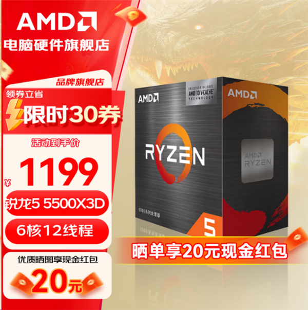 快科技3月1日动静,AMD入门级3D V-Cache处置器锐龙5 5500X3D已悄悄正在国内市场正式上架,京东售价1199元。