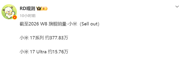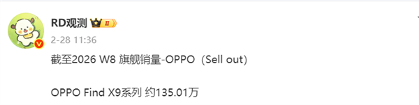 除此之外,RD不雅测还发布了OPPO Find X9系列取vivo X300系列的销量,前者约为135。01万台,尔后者则是达到了165。05万台